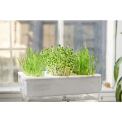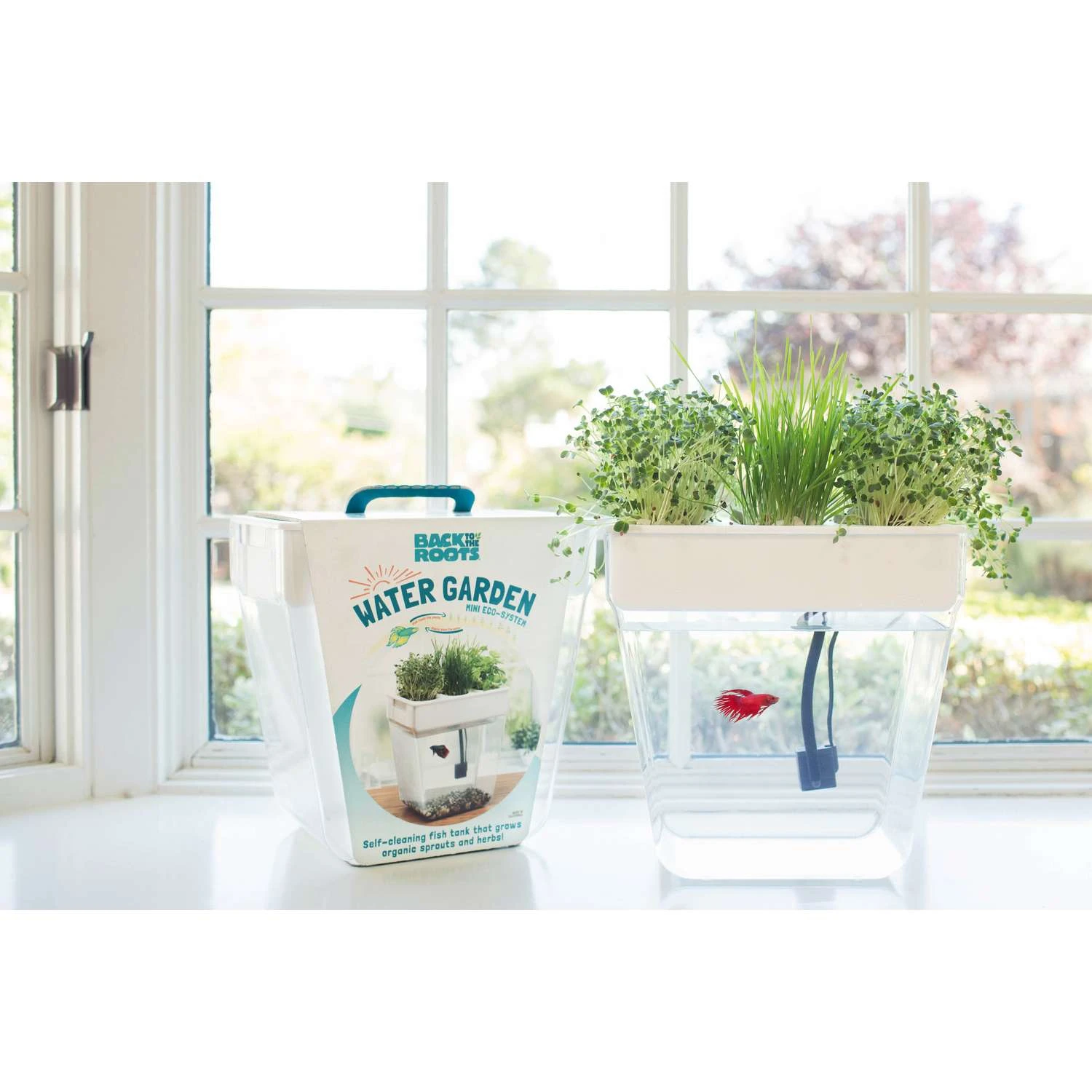 Upgrade your betta fish tank with this self-cleaning tank that also grows edible plants on top. This fish tank is a scaled-down aquaponics system where the fish waste fertilizes the plants on top and the plants clean the water so fewer water changes are required. Classroom project and the perfect intro to aquaponics and ecosystems. It’s perfect as a gift, family activity Quick Harvest – start harvesting the included organic microgreen seeds in just 10 days Organic and non-GMO