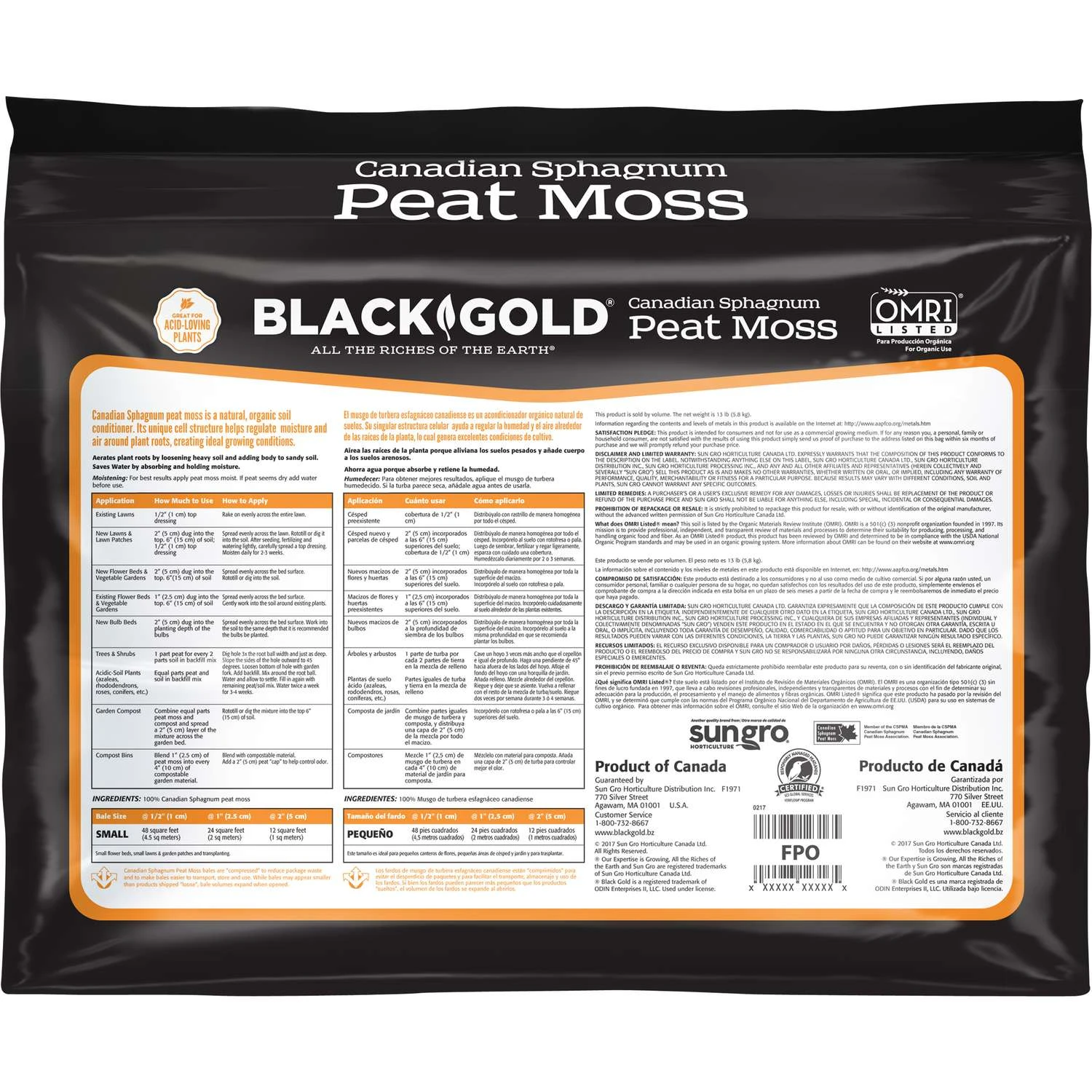 | Search Field | Black Gold Organic Canadian Sphagnum Peat Moss 1 cu ft Gardening Peat Moss BAG PRODUCTS PEAT MOSS SUN GRO HORTICULTURE DISTRIBUT Black Gold |