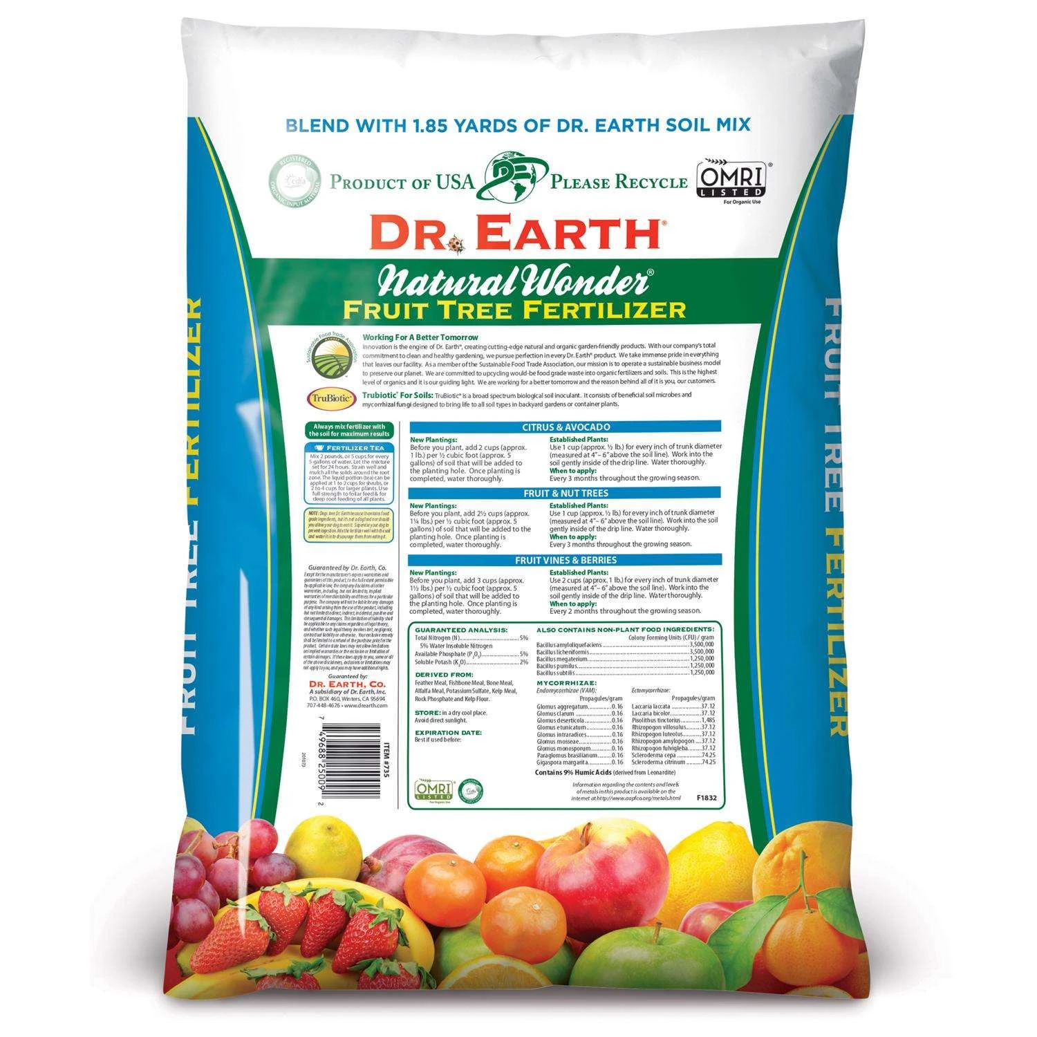 Natural Wonder fertilizer is formulated to feed all fruit trees, berries and fruiting vines in containers or any backyard soils. It can be used during the initial transplanting after digging the hole or anytime of the year to feed actively growing fruit trees and vines. People & pet safe-no synthetic chemicals, GMO infested chicken manure or toxic ingredients Handcrafted from human and feed grade ingredients A collaboration of high level environmentalists inspired to positively change the world Enriched with multi-minerals, proteins, carbohydrates, humic acids & trace elements that promote the healthiest soils capable of growing the healthiest fruits and berries for your family Formulated by milo shammas, founder of Dr. Earth, to grow home grown foods