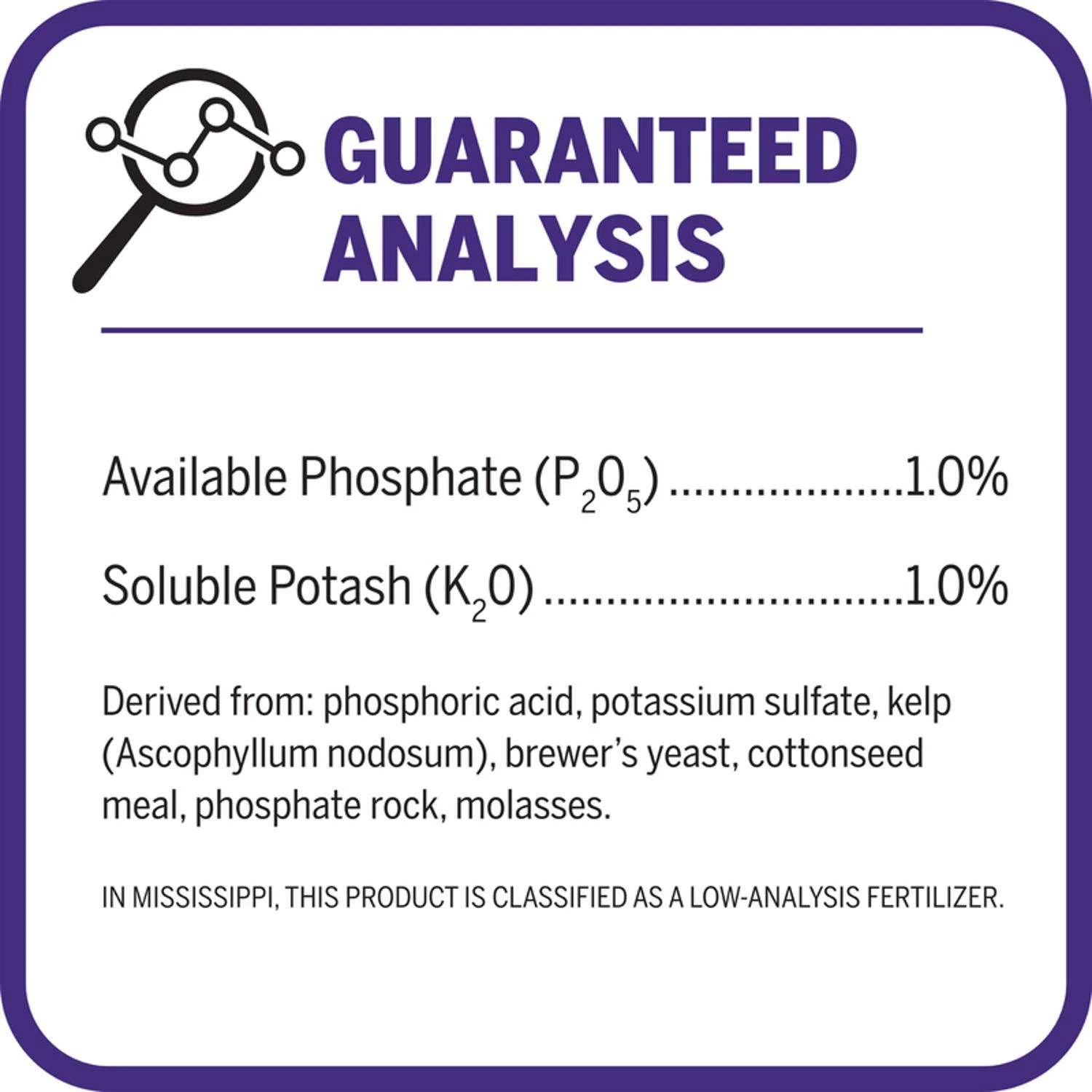 | Fertilizer Analysis (N-P-K) | 0-1-1 |
