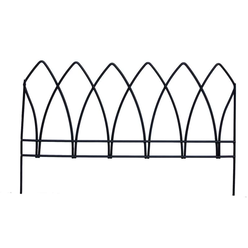 Steep intersecting wires form a classic, gothic-motif border fence, reminicent of cathedral windows. Place these panels end-to-end and they turn your garden pathway into a statement that will greet vistors with elegance. Heavy gauge steel with a pregalvanized coating and black, powder coated finsh provides years of enjoyment and beauty. Heavy gauge steel with a pregalvanized coating and black, powder coated finsh provides years of enjoyment and beauty Adds a stylish look to your garden path or landscapin 15 x 24